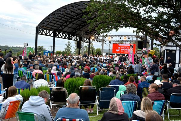 Atividade lotou o auditório central do Colégio Teutônia para apresentações de alunos dos 16 cursos do evento. Programação termina neste domingo, com espetáculo de encerramento no Centro Administrativo