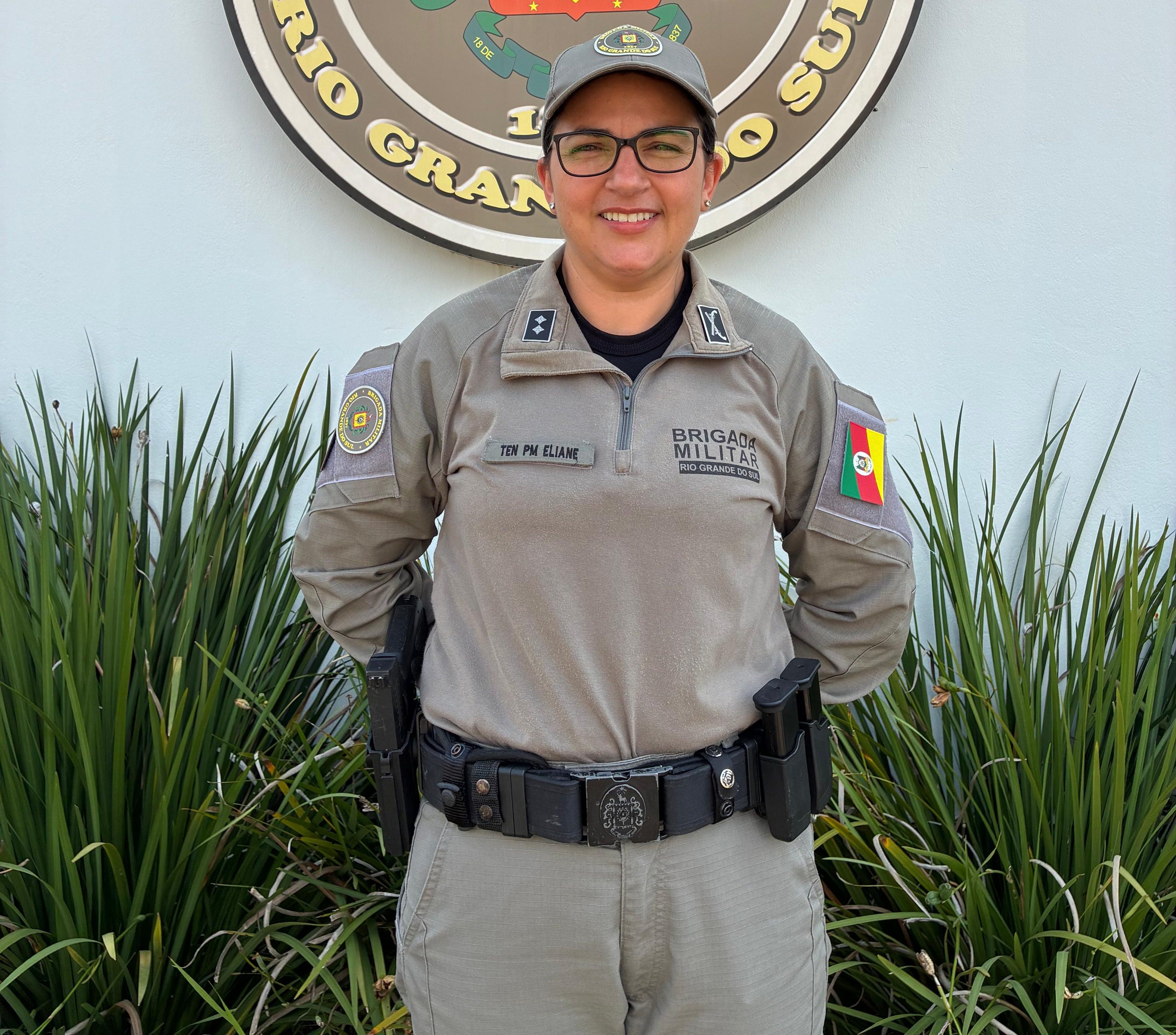A segunda entrevistada é a tenente Eliane Leal Cruz, 44 anos. Natural de Santana do Livramento, ela ingressou na Brigada Militar em 17 de fevereiro de 2013, em Lajeado. Já atuou em outros batalhões, na região da Fronteira Oeste, na Serra e em Porto Alegre, antes de regressar a Teutônia, onde já havia trabalhado antes, por 11 anos, e onde possui residência.
