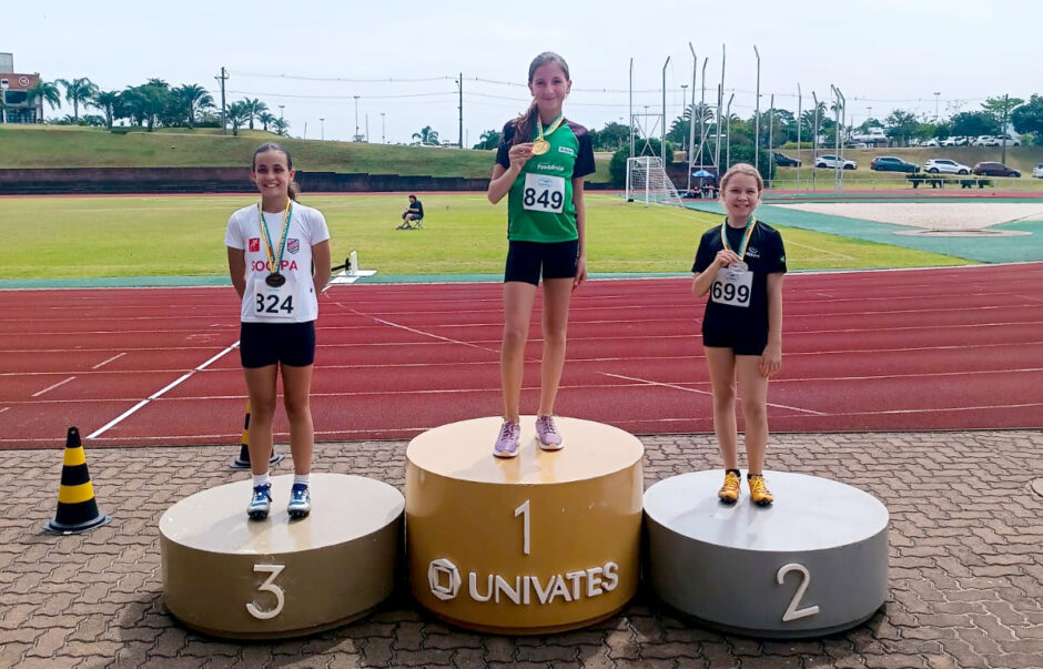 Júlia Wolf (c) conquistou medalhas de ouro e prata no Campeonato Estadual de Atletismo disputado na Univates