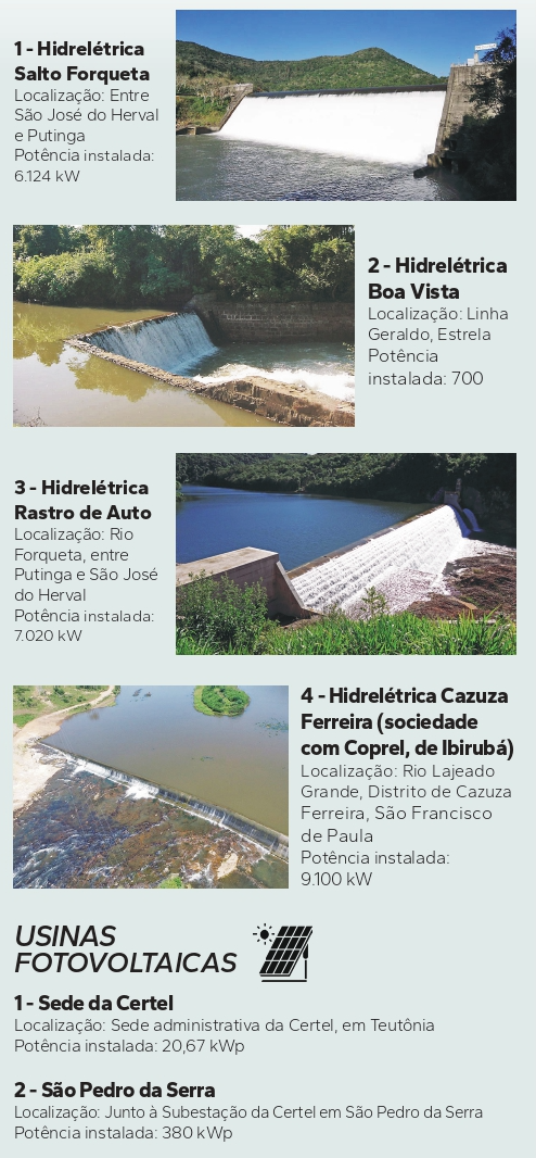 Empreendimentos de geração de energia da Certel instalados e projetados: