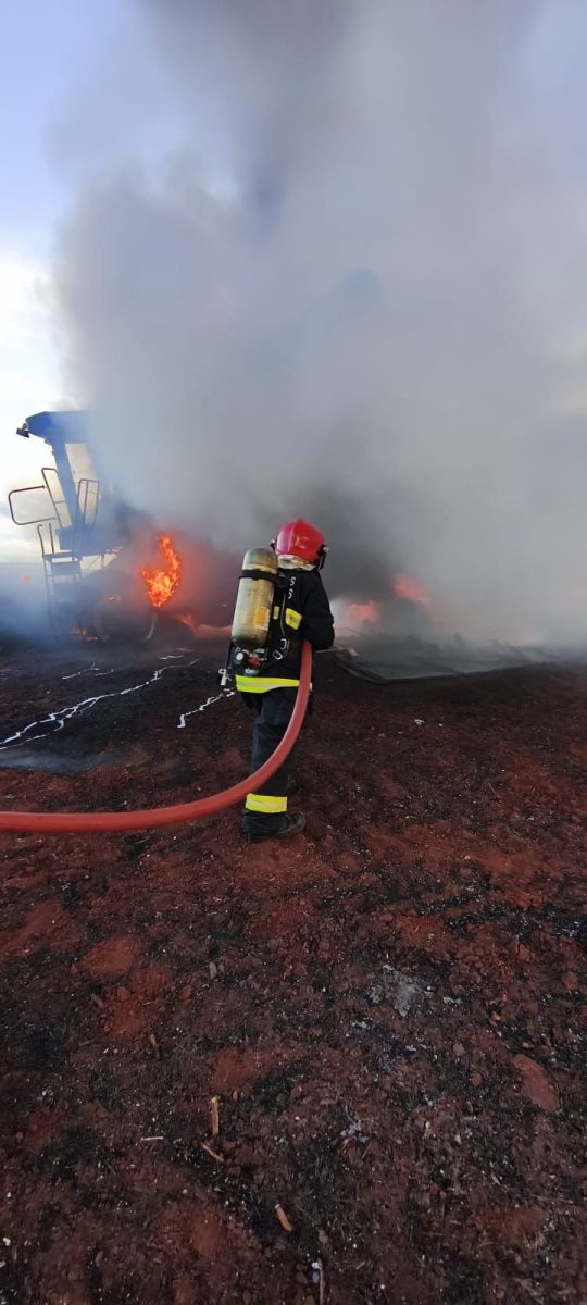 De acordo com a corporação, quando a equipe chegou ao local, a máquina agrícola já estava praticamente tomada pelas chamas. Foi possível evitar a propagação do fogo para a plataforma de corte, retirada a tempo.