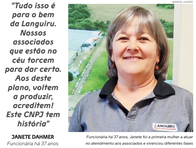 Acerca da crise, entende que a página mais uma vez será virada. “Tudo isso é para o bem da Languiru. Nossos associados que estão no céu torcem para dar certo. Aos deste plano, voltem a produzir, acreditem! Este CNPJ tem história. A Languiru é minha segunda família. Aprendo e ensino”, encerra.