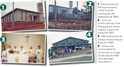 Logo após a aquisição dos terrenos, houve a grande rifa para sortear um Corcel Zero KM, doado por Elimar Schaeffer, além de outras campanhas. O lançamento da pedra fundamental se deu no dia 8 de abril de 1984 e a histórica inauguração em 25 de dezembro, como “Paróquia Nossa Senhora do Rosário”.