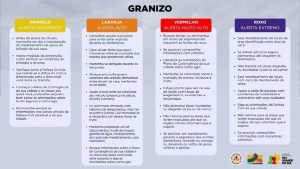 Neste cenário, a Defesa Civil alerta para o risco de elevações rápidas em arroios e pequenos rios, além de alagamentos em áreas urbanas e enxurradas, de forma pontual em áreas de maior declividade, conforme a intensidade da chuva.