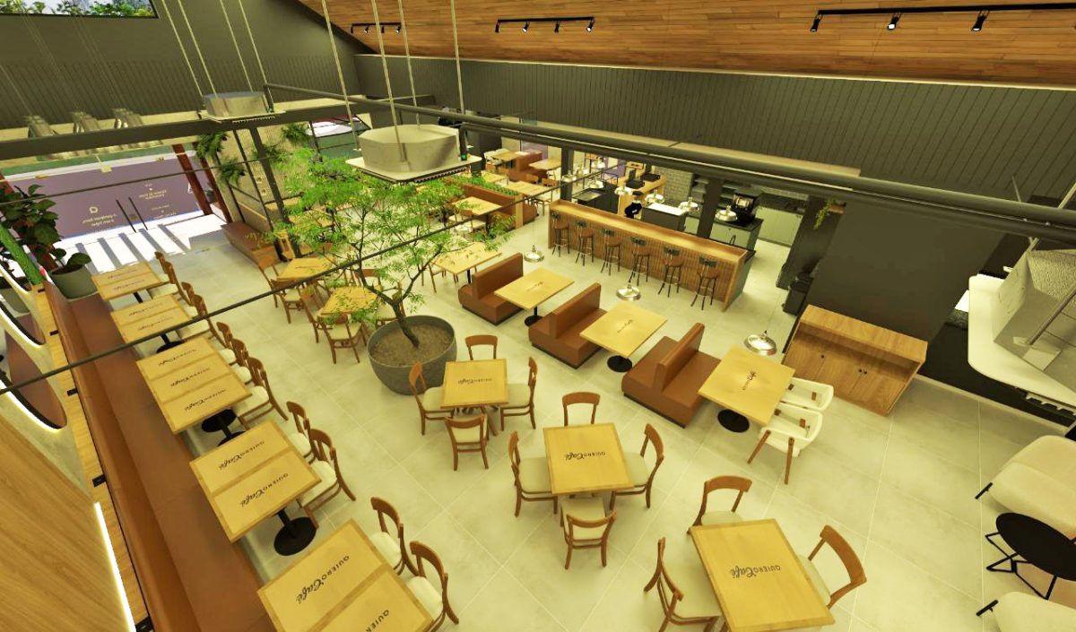 O projeto prevê área externa, novos banheiros, espaço kids maior e mais mesas. Dos atuais 60 m², o ponto passará a contar com 350 m². “Na concepção, trouxemos a atualização da marca, novos móveis, cores e texturas, mas procuramos manter as características do imóvel e deste Centro que faz parte da história da cidade”, exalta Matheus.
