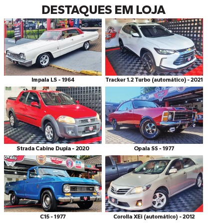 • Cuidado na seleção: cada veículo passa por revisão criteriosa antes de ser colocado à venda.