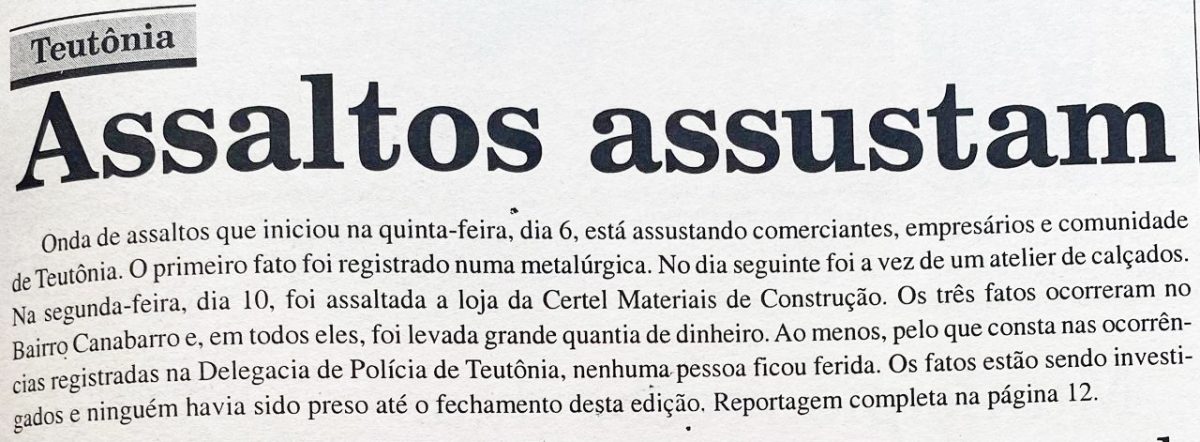 Há 20 anos: sequência de assaltos causava medo em Teutônia