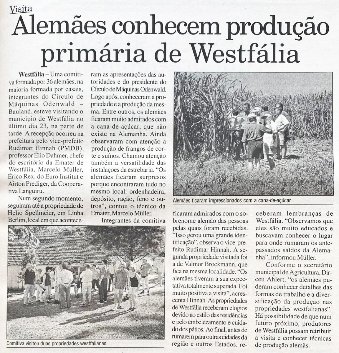 Westfália recebia uma comitiva de 36 alemães integrantes do Círculo de Máquinas Odenwald – Bauland. O grupo conheceu de perto a produção primária do município, plantações de cana-de-açúcar e a criação de frangos e suínos.
