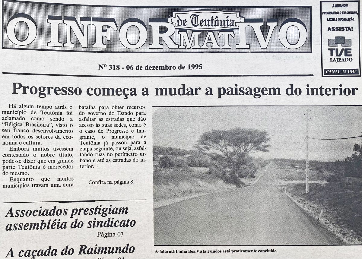 As obras de asfaltamento começavam a mudar a realidade do interior de Teutônia. Os primeiros trechos asfaltados foram a estrada que leva à Linha Harmonia Alta e o trecho entre Pontes Filho e Linha Clara. Naquele período, novas obras estavam em andamento: a estrada que liga Boa Vista a Boa Vista Fundos, com 5,3 km, e o trecho entre Pontes Filho e Linha Catarina, com 3 km de extensão, recebiam pavimentação. Já havia previsão para o asfaltamento das estradas de Linha São Jacó e Linha Frank.