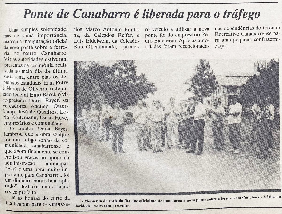 A ponte sobre a ferrovia, em Canabarro, era oficialmente liberada para o tráfego. A solenidade de inauguração contou com a presença de diversas autoridades e lideranças, entre deputados, empresários e comunidade local. O ato foi finalizado com uma confraternização no Canabarrense.