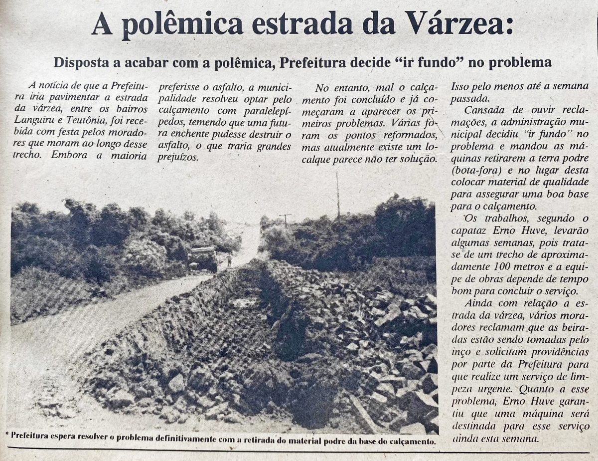 Há 30 anos: calçamento da Estrada da Várzea causava polêmica