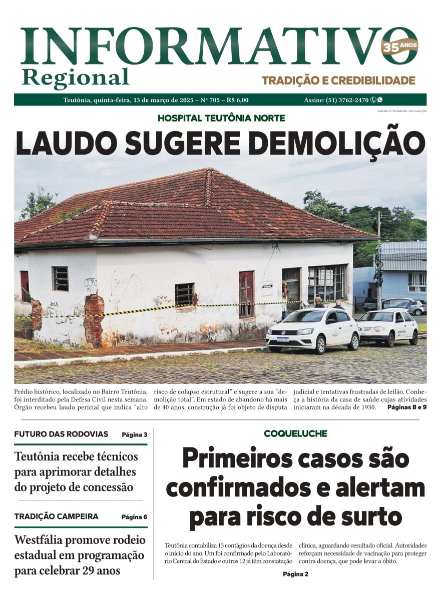 A capa do dia 13 de março deu ênfase à iminente demolição do prédio do antigo Hospital Teutônia Norte. Em estado de abandono há mais de 40 anos, o imóvel apresentava condições estruturais precárias e risco de desabamento, conforme estudos técnicos apresentados pela prefeitura. A destruição ocorreria alguns dias depois.