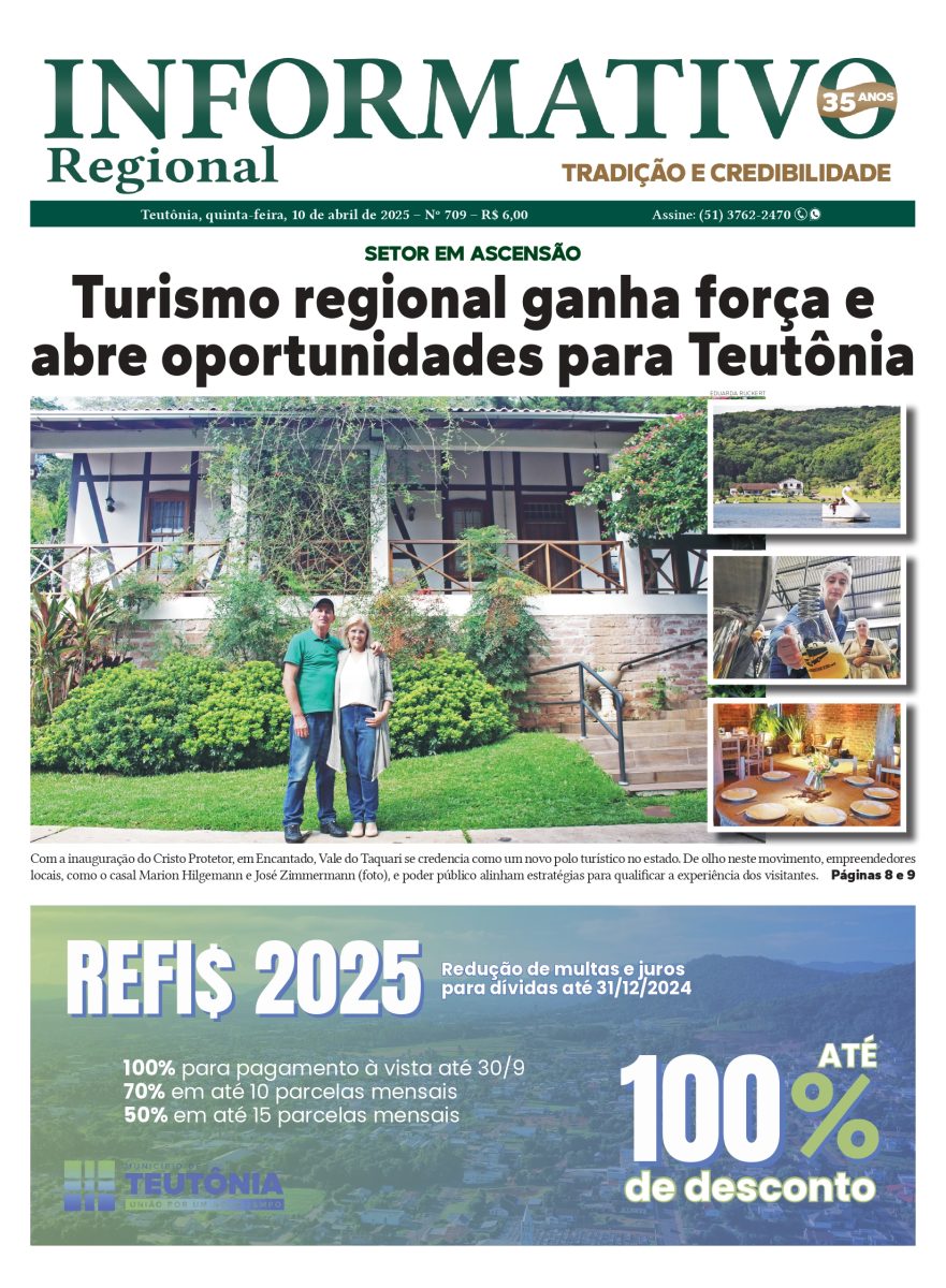 Em nível regional, abril foi marcado pela inauguração da estátua do Cristo Protetor, em Encantado. Reportagem do Informativo Regional, publicada em 10 de abril, abordou as oportunidades e os desafios que Teutônia e cidades vizinhas precisariam observar para se beneficiarem do crescimento do turismo.