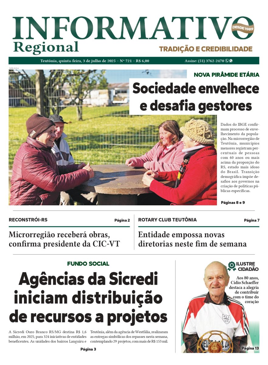 No dia 3 de julho, reportagem especial do Informativo Regional abordou o processo de envelhecimento da população, a partir de novos dados divulgados pelo IBGE. As estatísticas apontaram o RS como o estado com o maior índice de idosos do país, com o Vale do Taquari apresentando percentuais acima da média estadual.