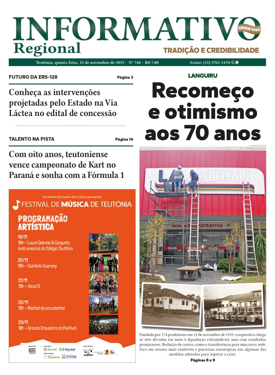 Evento comemorativo aos 70 anos da Languiru marcou também a mudança da sede administrativa da cooperativa. As operações foram transferidas para o prédio anteriormente utilizado como Agrocenter, dentro de um processo de busca por maior otimização e eficiência. O tema ganhou destaque na capa do dia 13 de novembro.