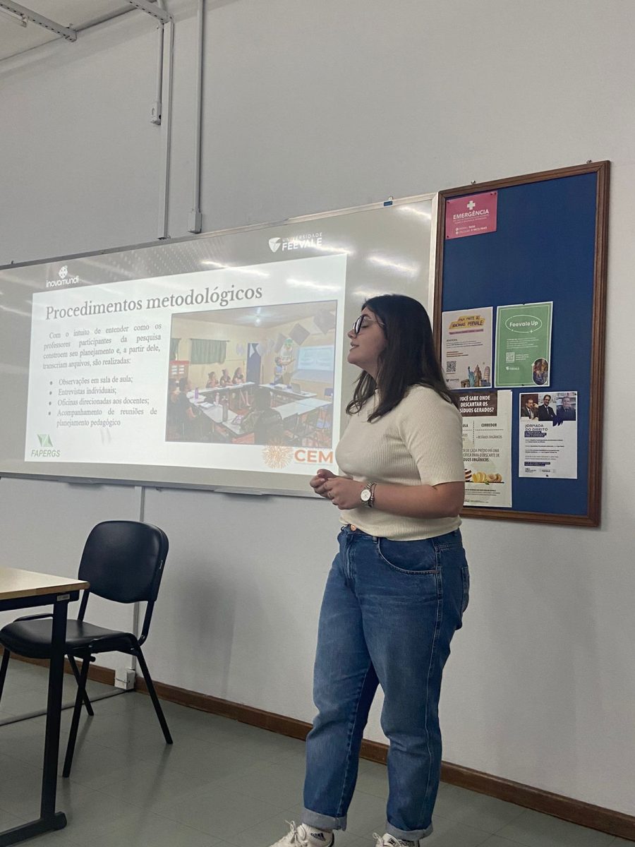 Além do trabalho no Colégio Teutônia, a professora participa como bolsista de Iniciação Científica na Univates, experiência que, em seu ponto de vista, amplia a visão e permite o diálogo com outros educadores e pesquisadores.