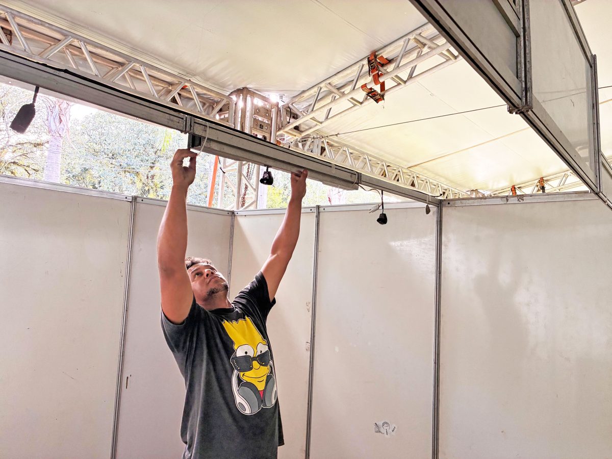 Técnicos preparam estrutura da programação que irá ocorrer na praça central